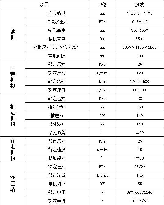 3. 履帶行走,大大提高移鉆、穩(wěn)鉆的效率,顯著減輕工人的體力勞動(dòng)強(qiáng)度;